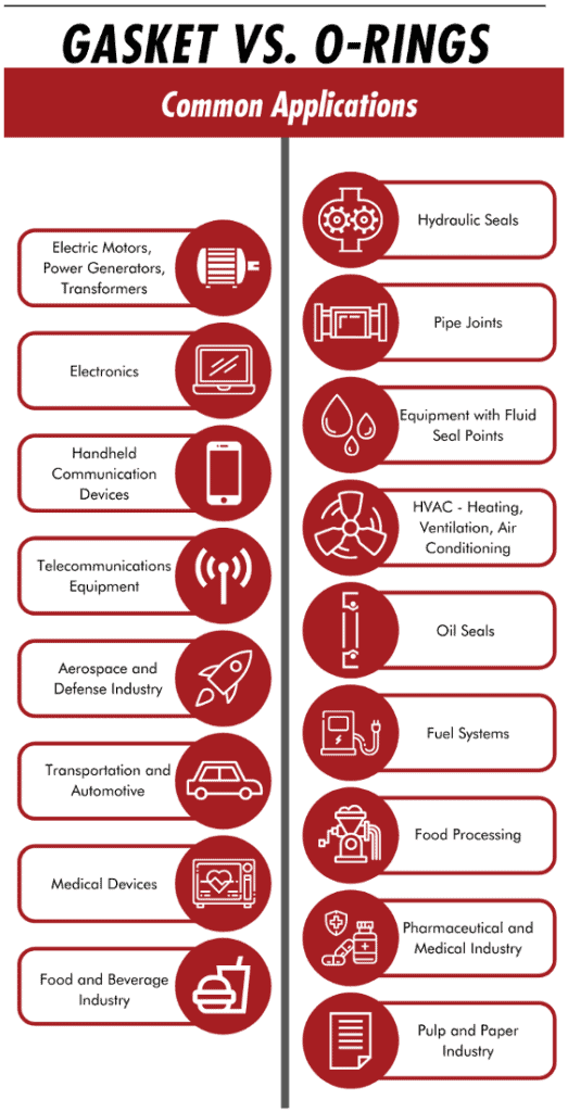 The operating temperature of equipment will determine the best material to use for manufacturing the O-ring or gasket. While both can withstand a wide range of temperatures, gaskets are best for extreme temperature situations. However, O-rings perform better than gaskets in applications with extreme pressure.